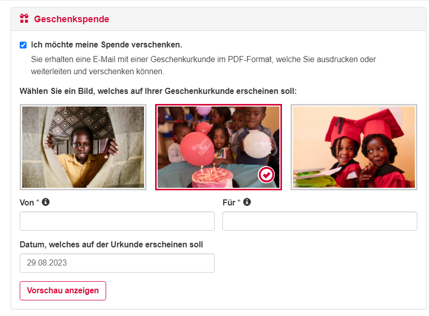 2. Hier selbst ausprobieren und eine Geschenkspende erstellen: