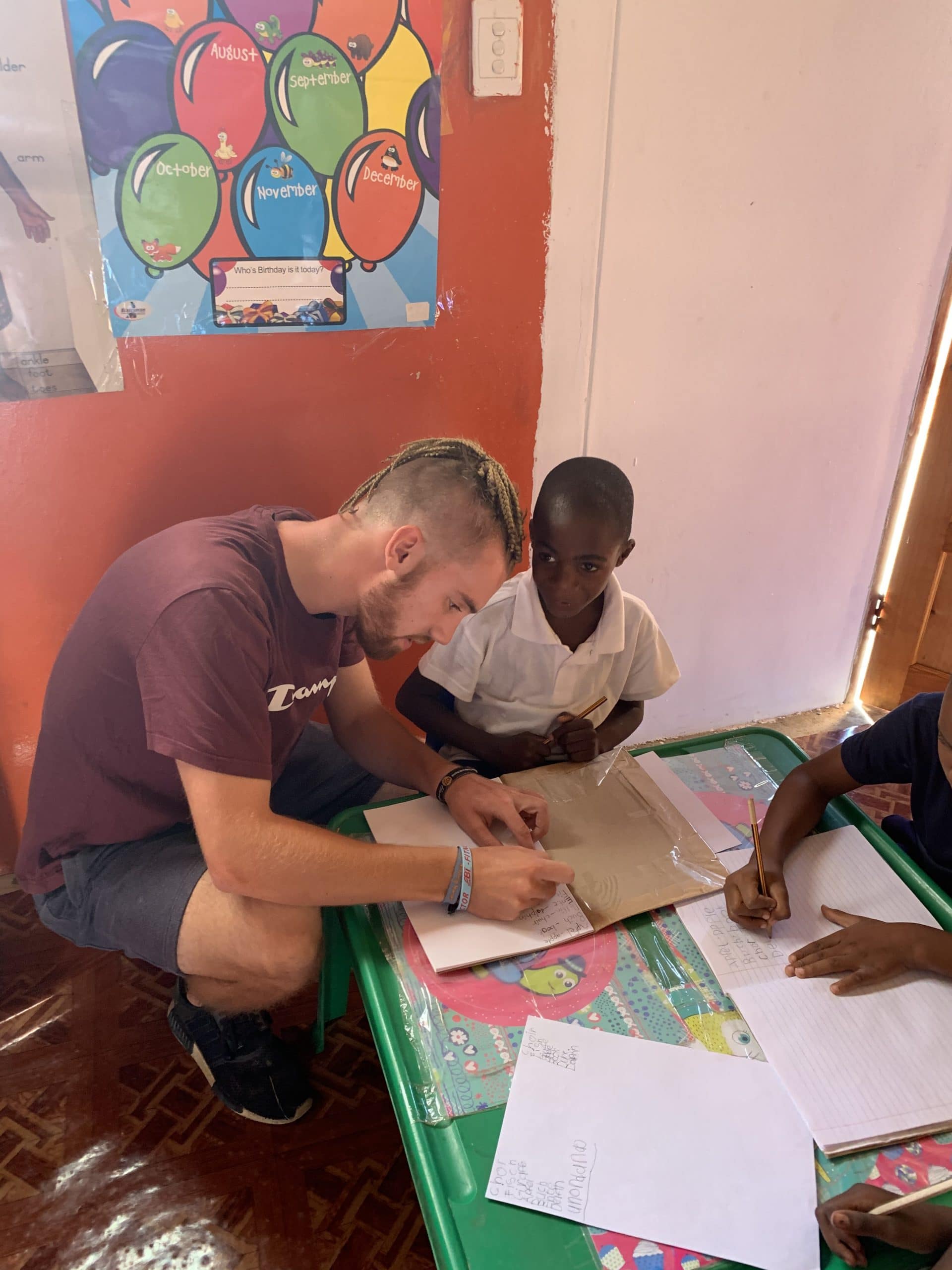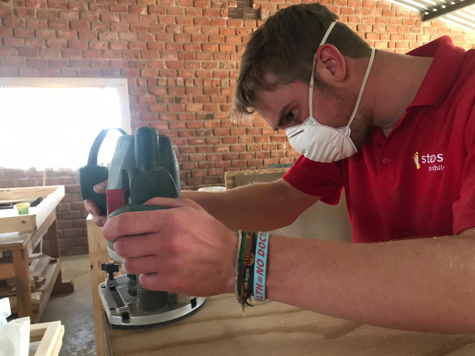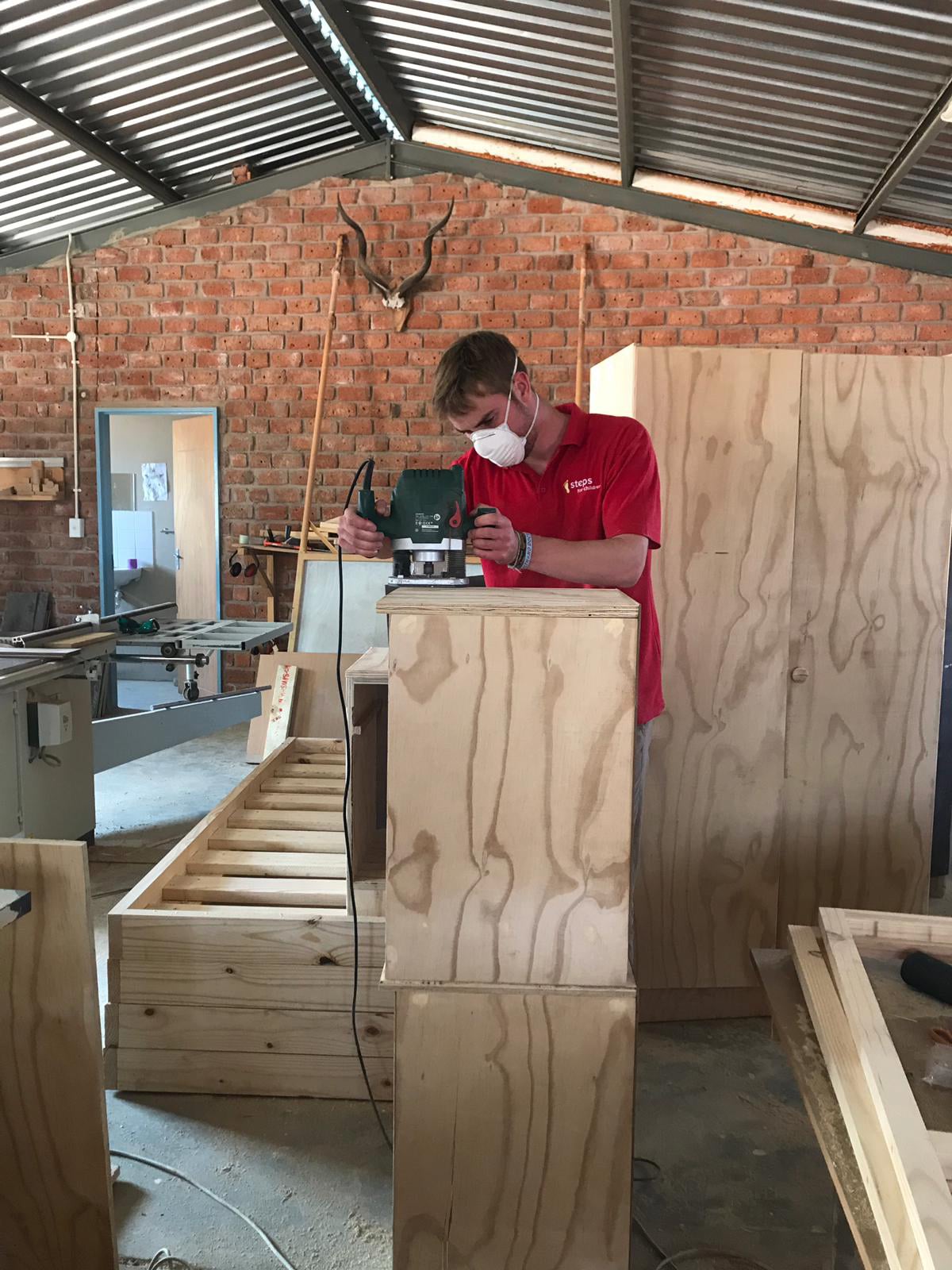 Nach dieser Erkundungszeit konnten wir wählen, wo wir vormittags arbeiten wollen.“ Dominik entschied sich für die Holzwerkstatt und findet hier gemeinsam mit Romario und anderen Tischlern kreative Lösungen, die teilweise aufgrund von Materialmangel gefordert waren. Eigene Projekte in der Tischlerwerkstatt wie das Bauen von Bilderrahmen, aber auch die Herstellung von Möbeln bereiteten ihm große Freude. Für die Nachmittagszeit bekam Dominik nach einer Einarbeitungsphase eigene Nachhilfeschüler aus der Gruppe der Schutzengelkinder und konnte so intensiv mit ihnen für bevorstehende Tests und Prüfungen lernen.