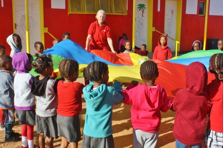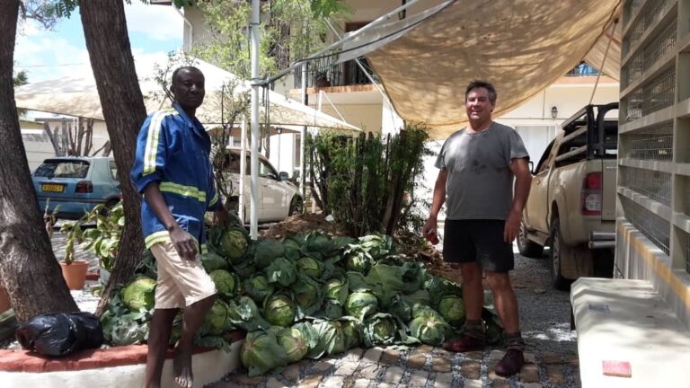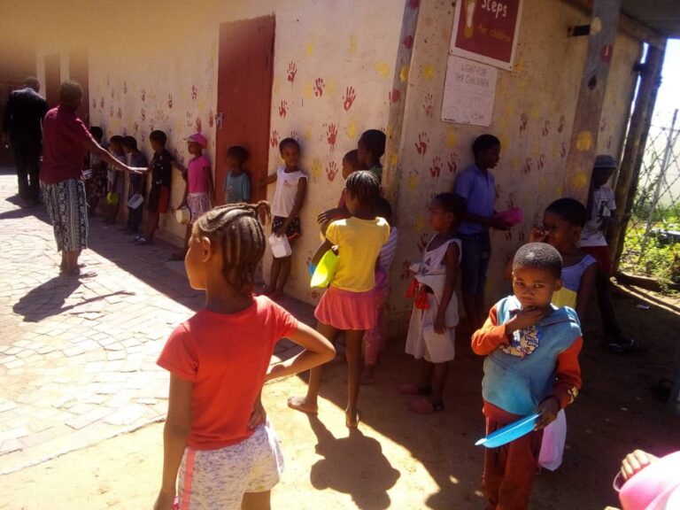 In Gobabis ist die Essensausgabe für unsere steps Kinder im Rahmen der gesetzlichen Richtlinien endlich möglich: Lehrer*innen und Erzieher*innen helfen