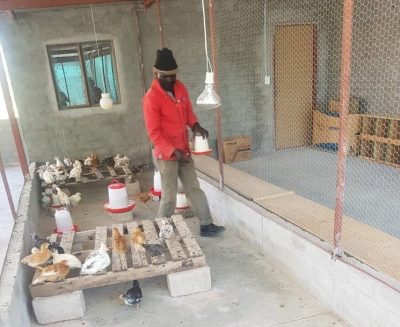 Einzug der Marathon-Hühner In Okahandja ist in den letzten Tagen vor der Coronapandemie der fast 100 qm große Hühnerstall fertig